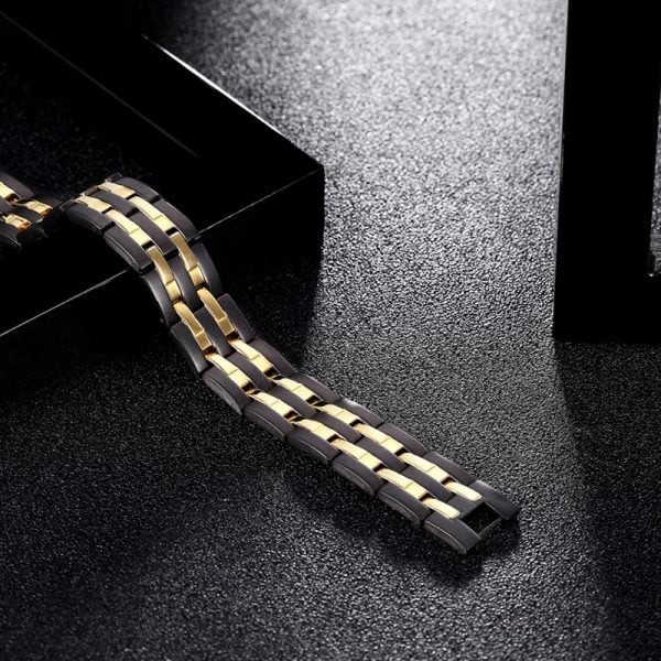 Black & Golden color Double line Original Neodymium Magnetic Bracelet with Negative ION, FIR and Germanium Ball.